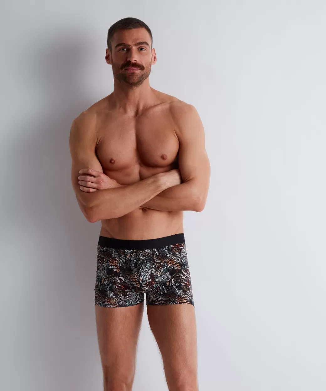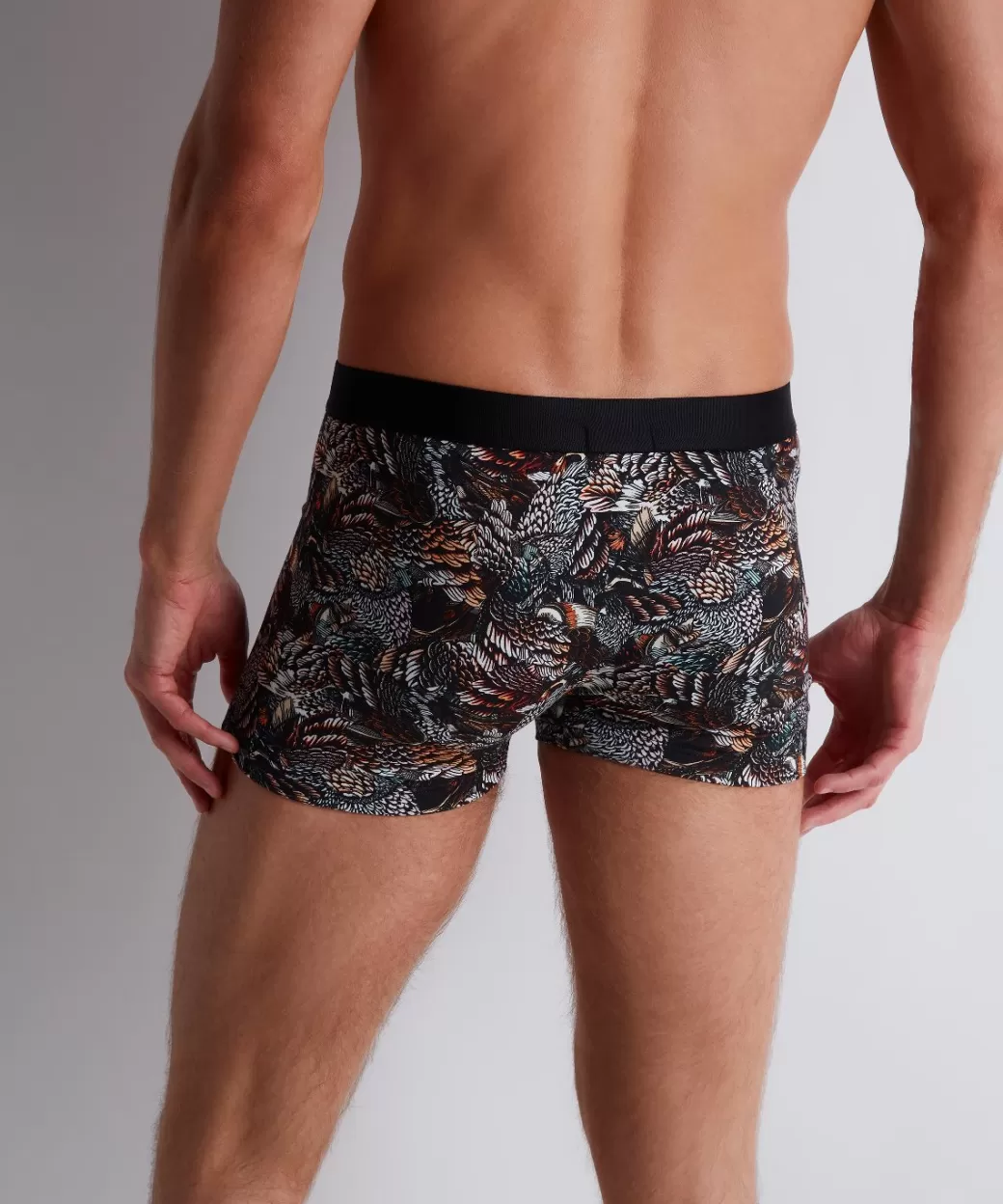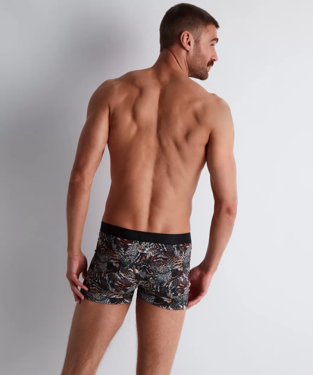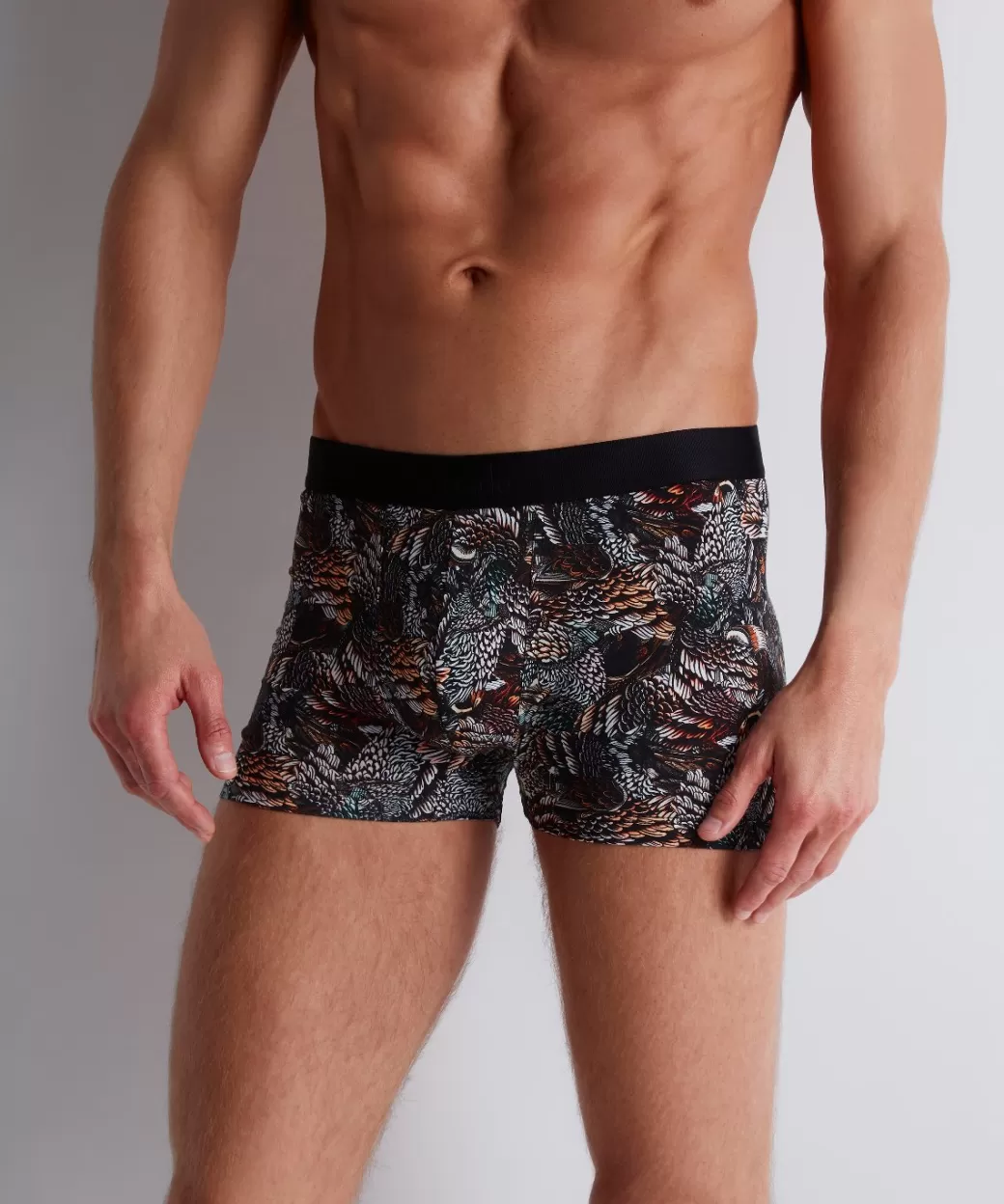 Graphique et hypnotique, le boxer Owls se pare d’un motif très original de plumage aux coloris mystérieux dans une coupe sexy et moderne, tout en coton modal extensible. Alliant confort et séduction, il comprend un renfort à l’entrejambe pour un maintien optimal, ainsi qu’une ceinture logotypée Aubade ton sur ton.