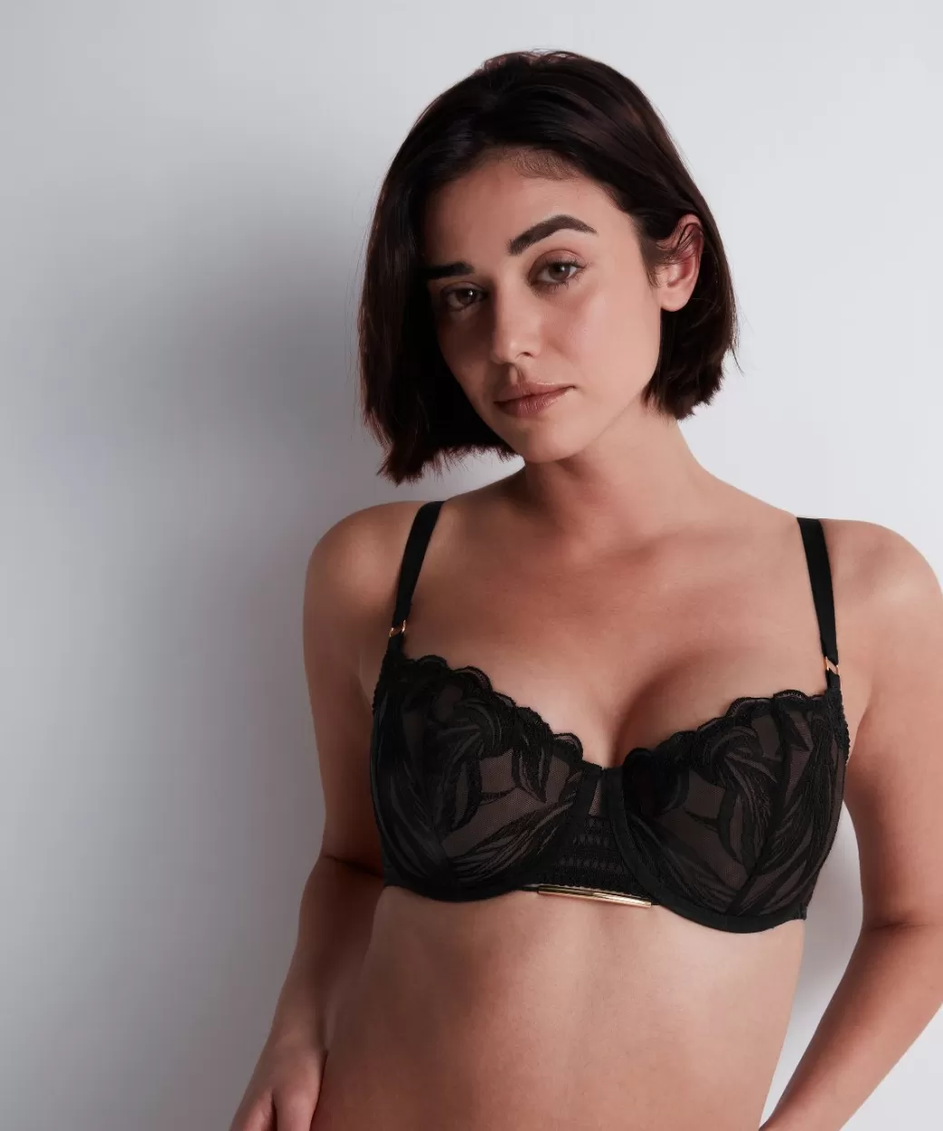 Assurant confort et maintien tout au long de la journée, le soutien-gorge corbeille armatures Into The Groove déploie sa broderie originale, offrant un décolleté naturellement galbé, ouvert et sexy. Élégant, il se pare d’un bijou épuré à l’entregorge, rehaussé par une bande graphique, et d’anneaux dorés sur les bretelles.