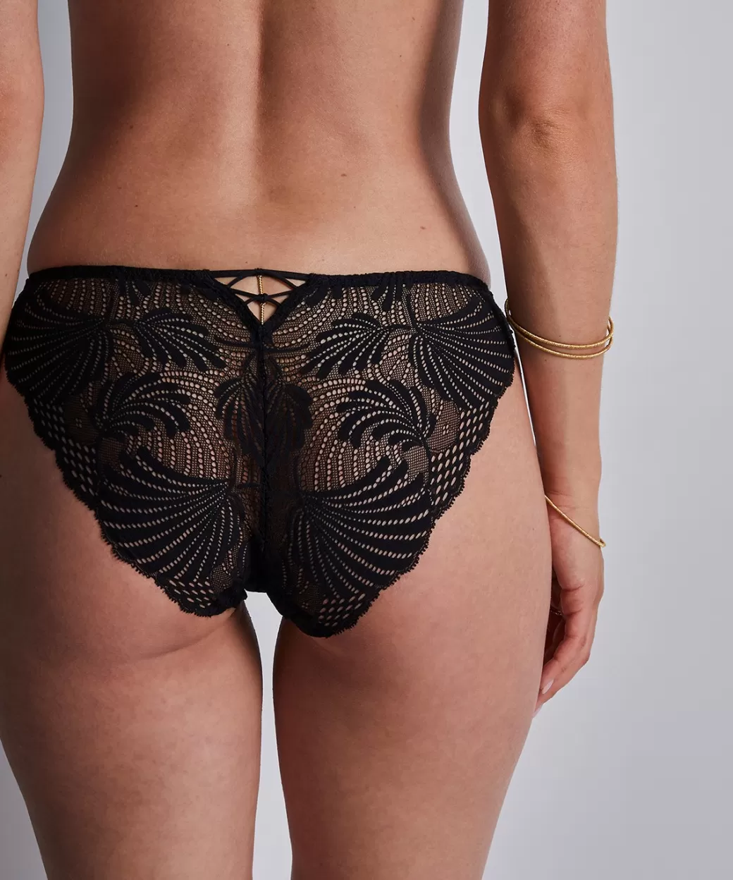 Mettant en valeur le galbe des fesses et les hanches, la culotte italienne Rhythm of Desire offre une coupe confortable et flatteuse qui fait la part belle à sa dentelle végétale sexy. Jouant entre opacité et transparence, elle se pare derrière d’une découpe sensuelle dévoilant subtilement le creux des reins.