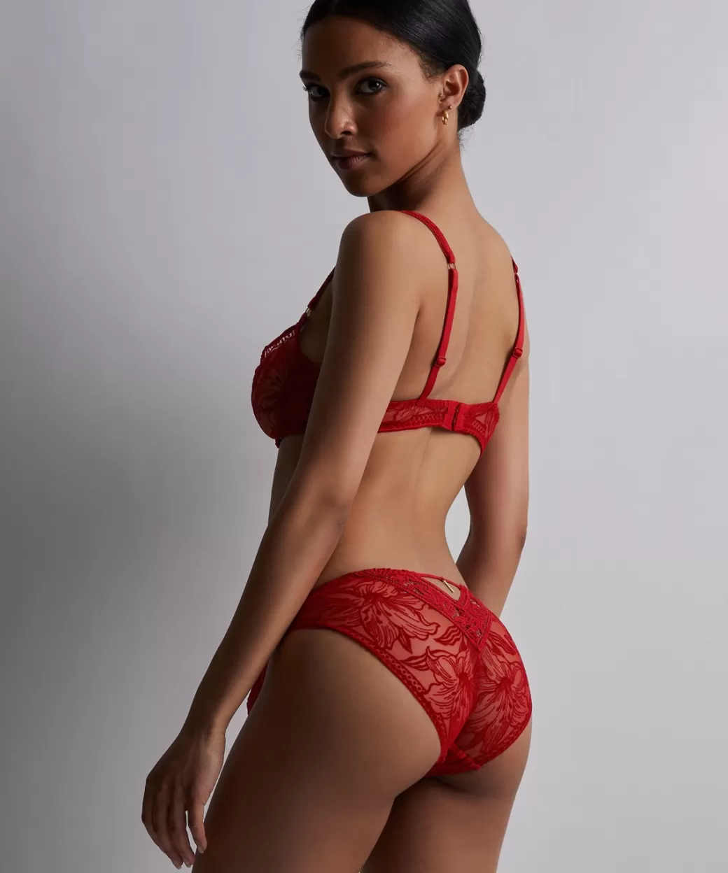 Sublimant les courbes féminines, la culotte italienne Cœur à Corps met en valeur les hanches et le galbe des fesses. Confortable et séduisante, elle laisse apparaître la peau à travers son galon floral élégant. Dans le dos, elle se pare d’une ouverture qui lui apporte une touche moderne et sexy.