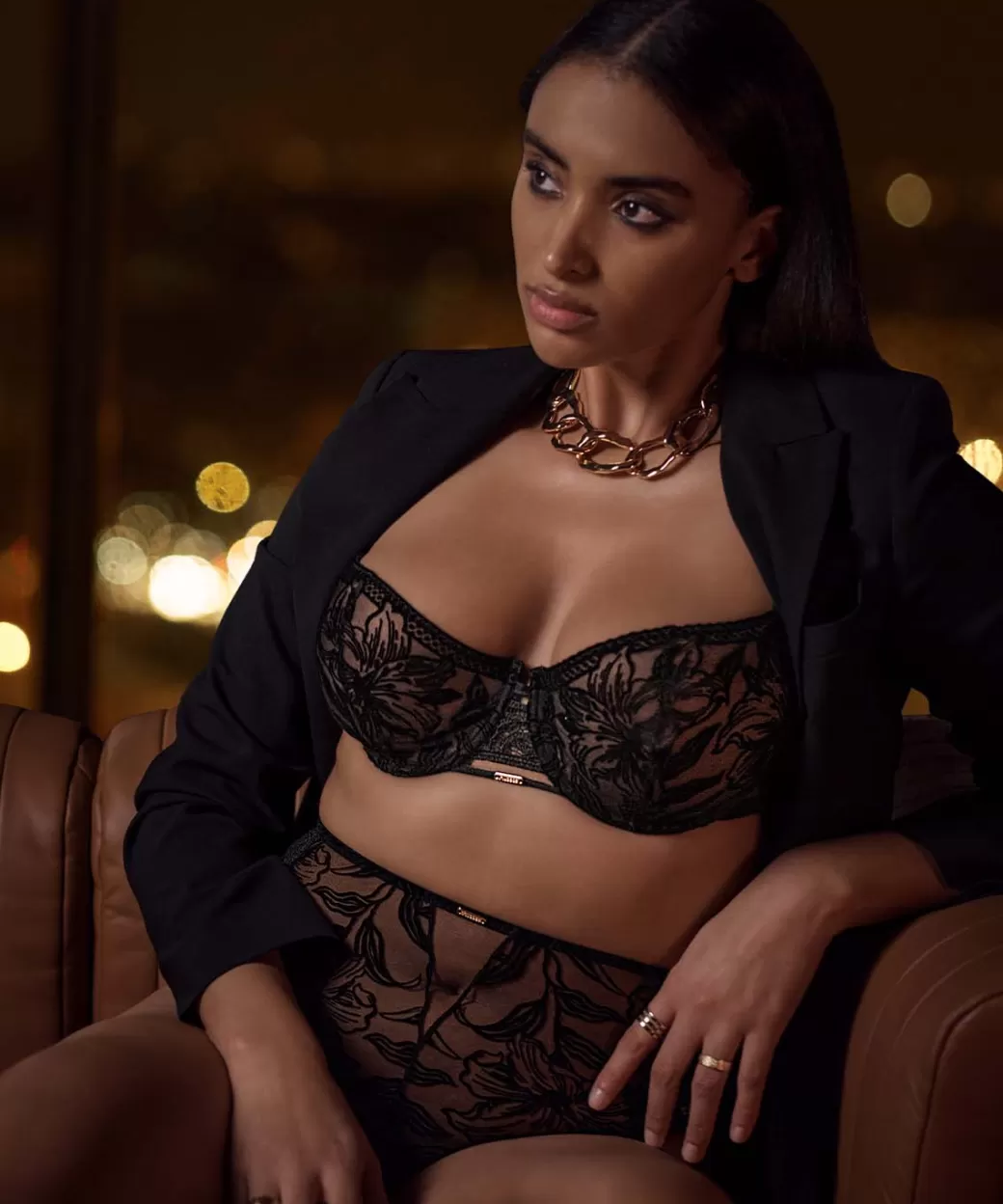 Sexy, la culotte taille haute Cœur à Corps met en valeur les courbes féminines. Couvrante et confortable, elle allie le raffinement du galon, la transparence du tulle, la modernité de la guipure et la sensualité de son ouverture dans le dos dans un style résolument inspiré de la haute couture.