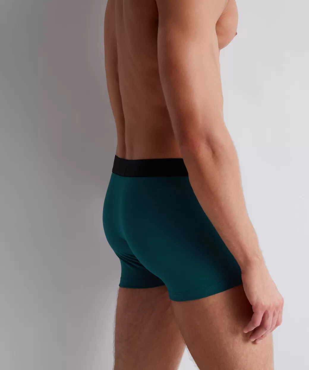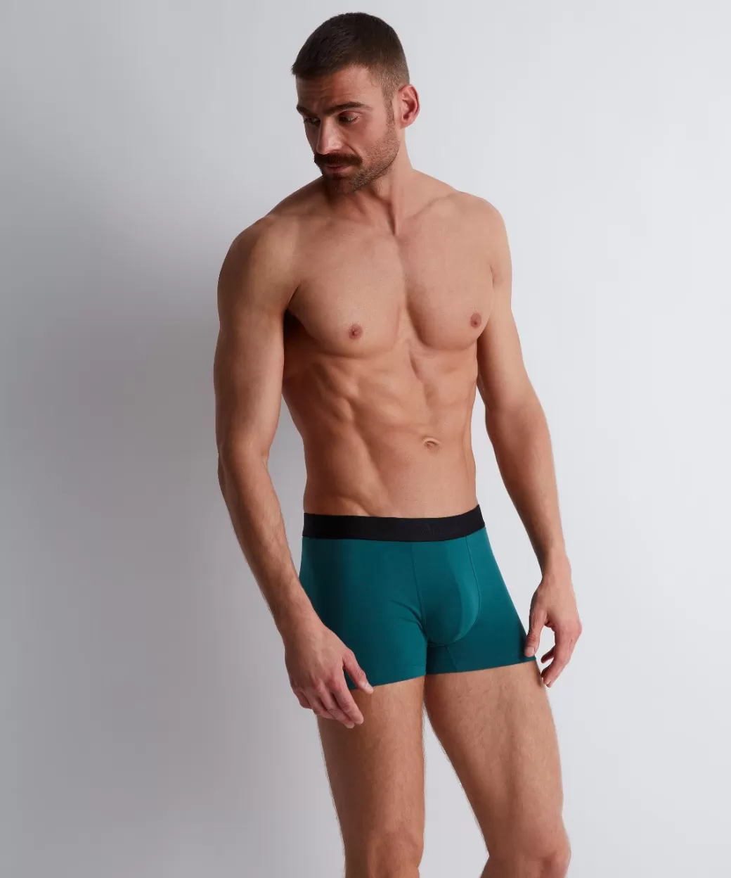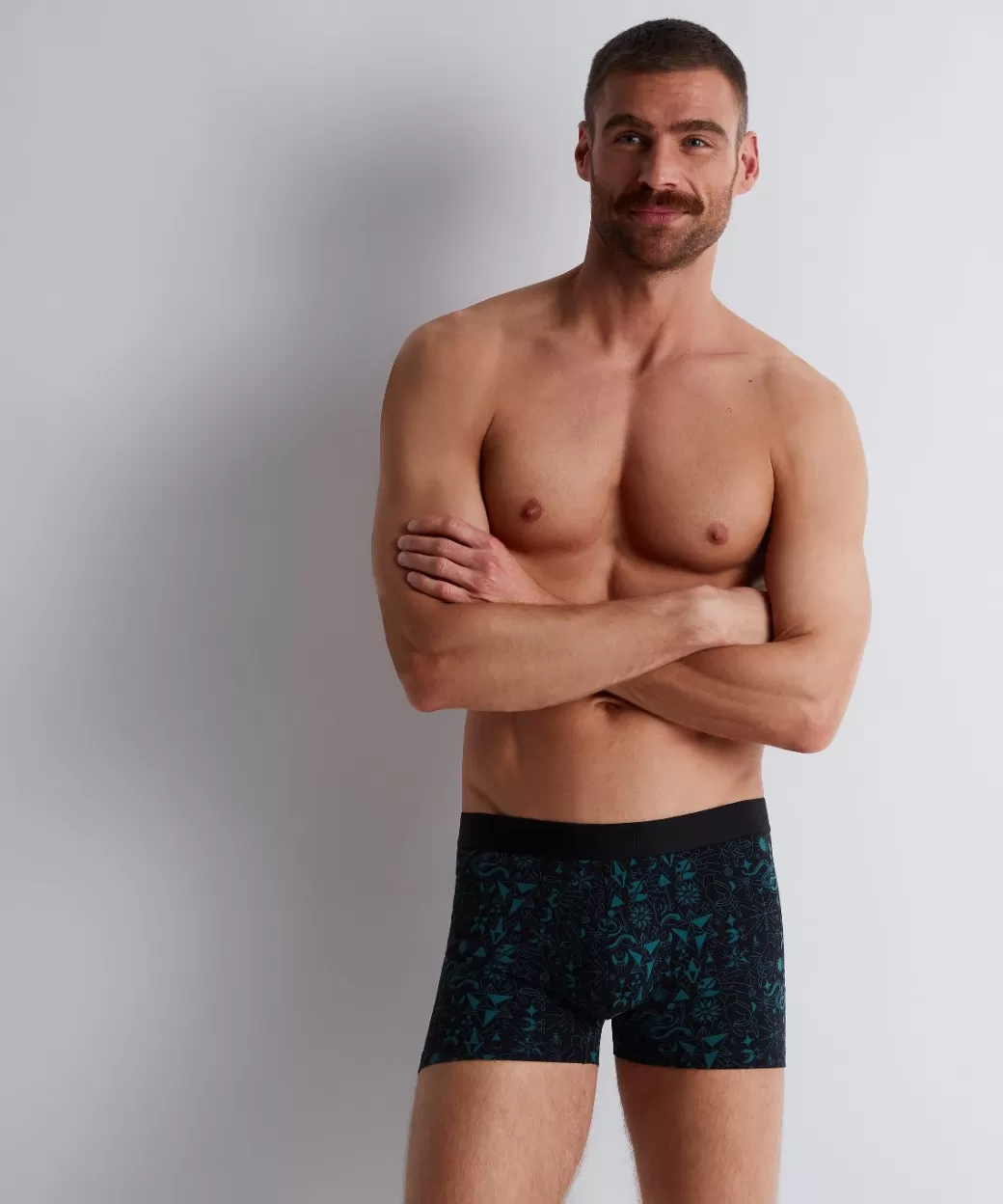 Moderne et original, le duo de boxers Talisman/Vert comprend un sous-vêtement aux motifs mystérieux et ésotériques couleur pétrole sur fond noir, et un uni dans les mêmes tonalités. Alliant matière stretch et coupe sans coutures sur les côtes, ils offrent une sensation de confort tout au long de la journée.