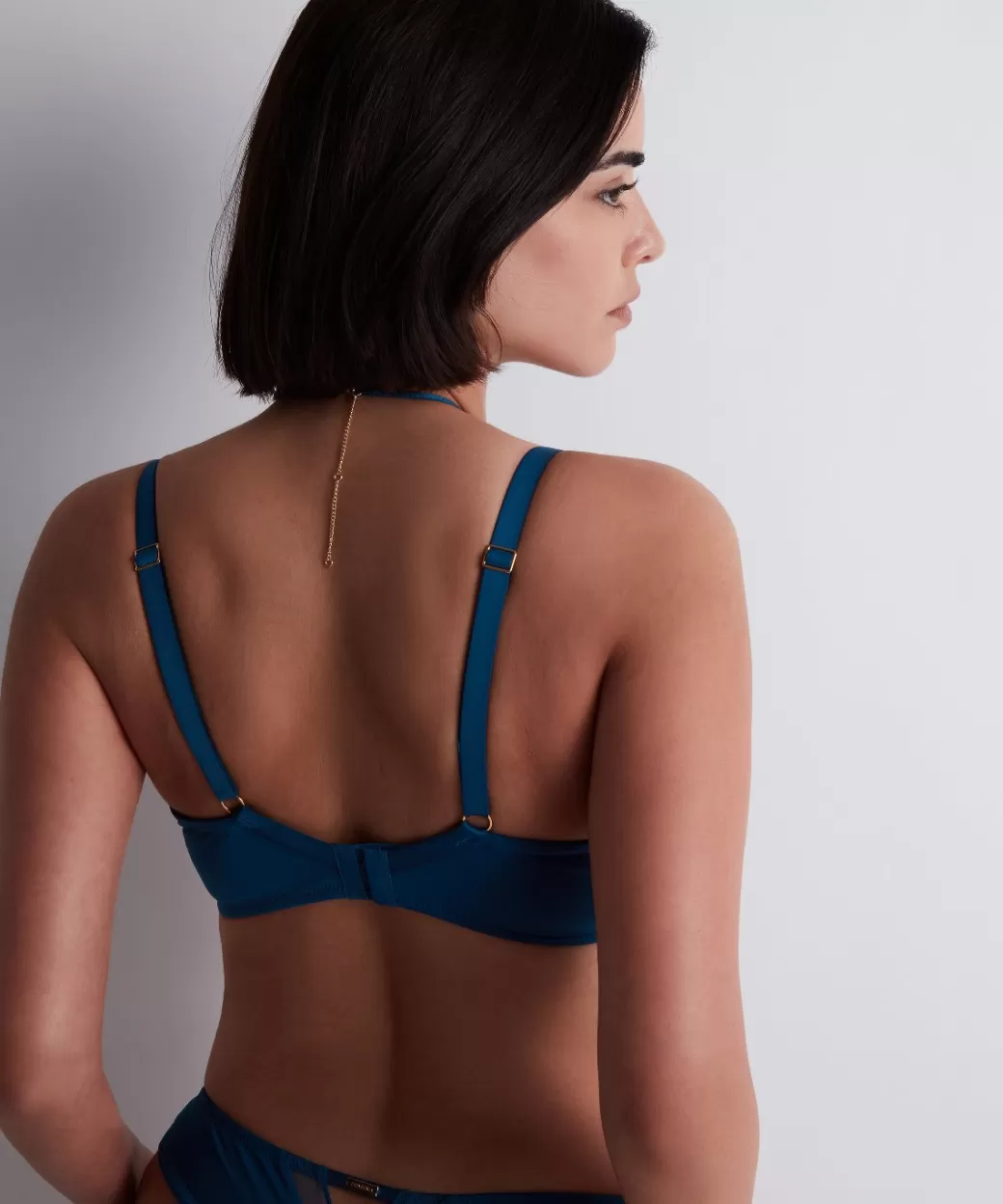 Avec son effet push-up naturel, le soutien-gorge plunge foulard Sumptuous Waves offre une forme moderne, sexy et confortable qui souligne le galbe de la poitrine. Jouant avec des effets entre transparence et opacité sensuels, il se pare d’un collier amovible à porter au gré des envies, sublimant un décolleté profond.