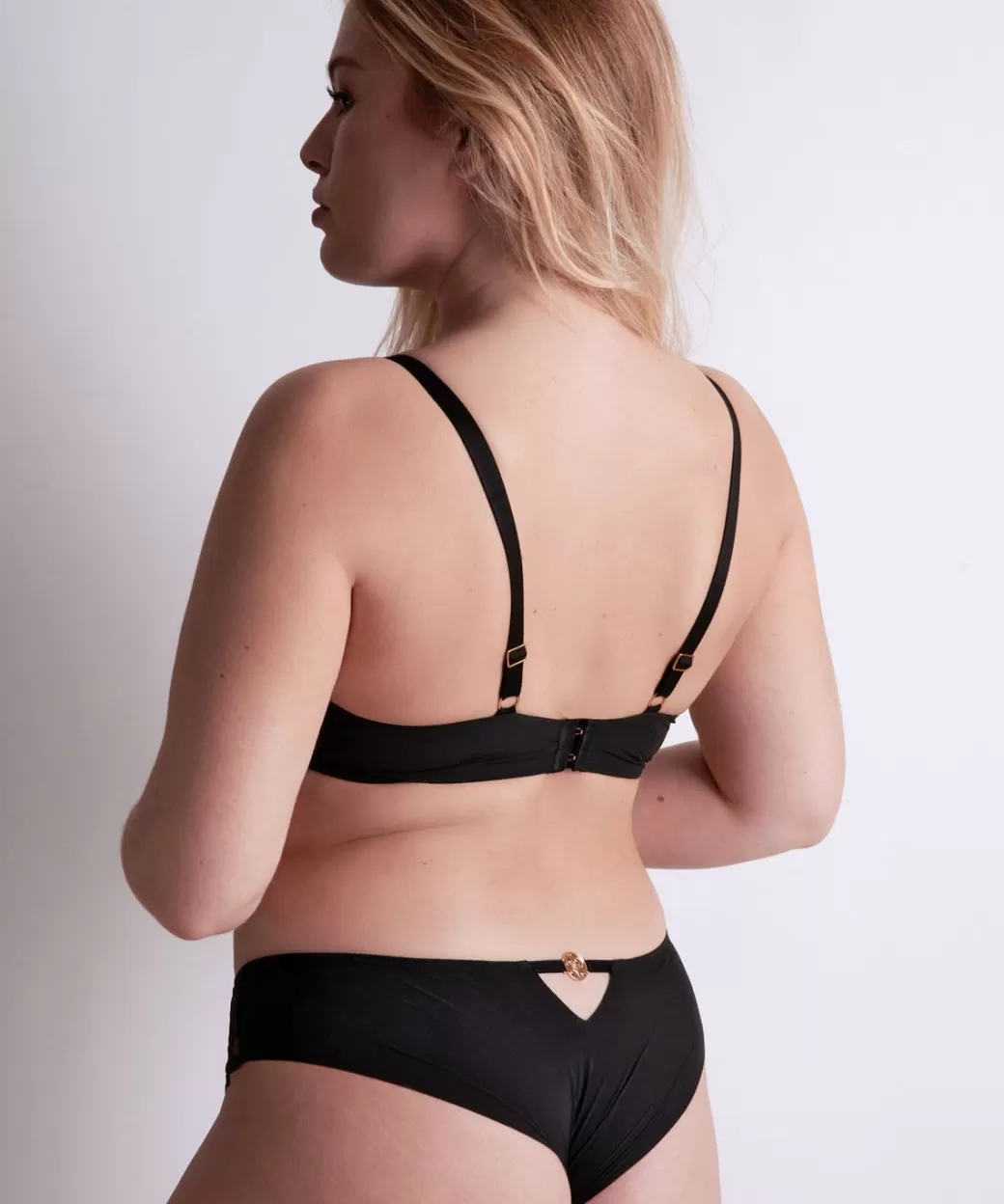 Le soutien-gorge triangle ultra plunge Elie Saab x Aubade allie broderie sculpturale aux touches perlées de lurex, détail doré à l’entregorge et dos en tissu mat léger très moderne. Déployant sa matière haut sur le buste, il offre une forme couvrante et confortable à l’effet seconde peau très sensuel.